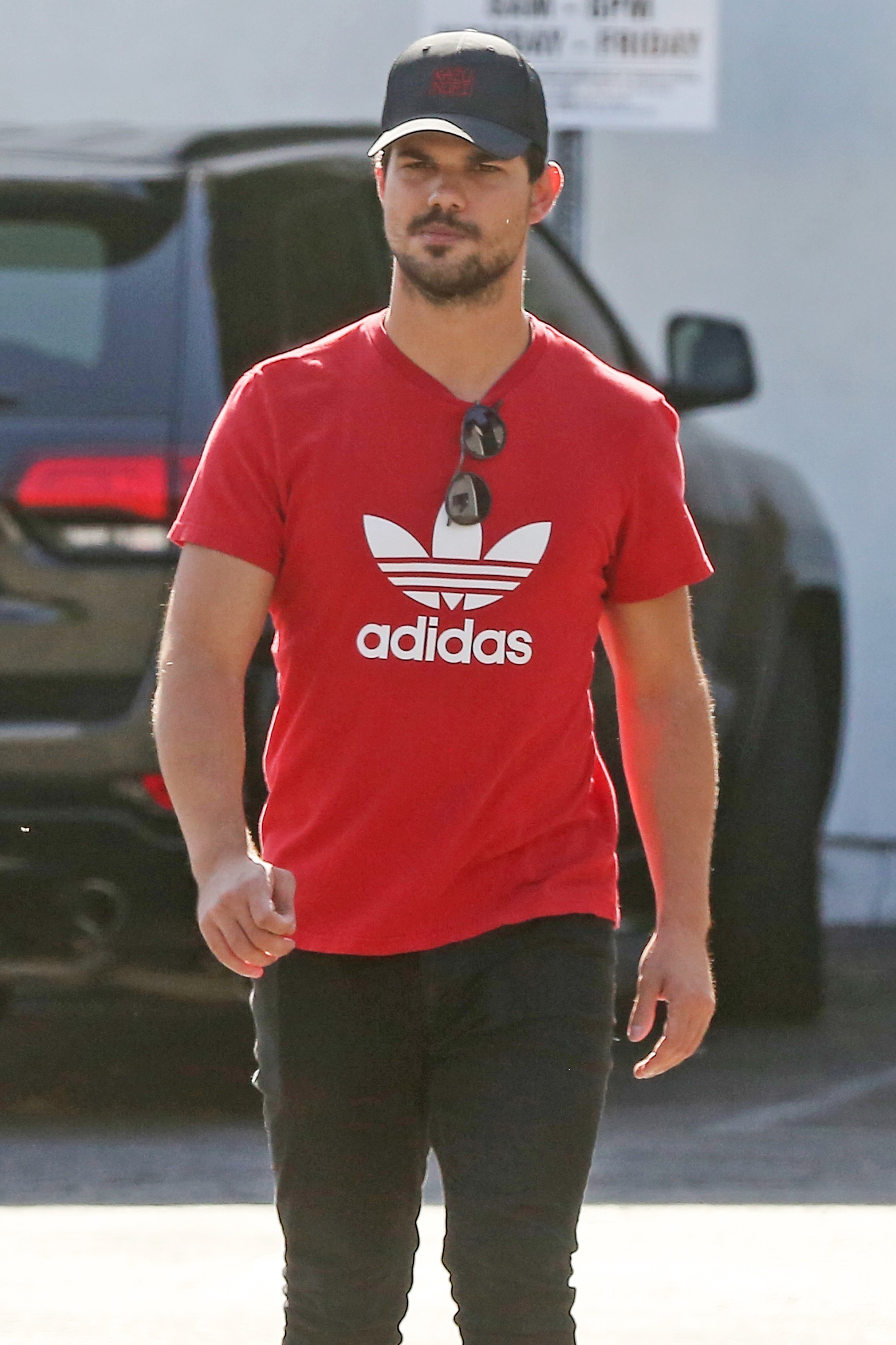 : Taylor goes down the street in Los Angeles.
